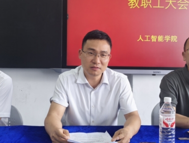 2025年7月9日,我院在一教220会议室召开全体教职工大会。会议由学院党总支书记王西礼主持,学校党委副书记、校长晏致涛,科研开发处处长、人工智能学院院长杨杰出席会议并讲话,学院副院长陈宏、专职组织员刘聪颖及学校组织部组干科科长覃健出席会议。学院全体教职工参加会议。