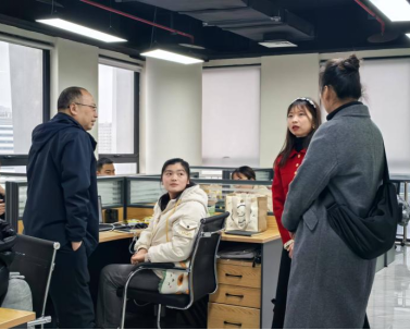 走访过程中,双方进行了深入交流座谈。陈宏副院长详细介绍了人工智能学院的专业设置、人才培养模式以及毕业生情况,表达了学院希望与企业建立长期稳定合作关系的意愿。王西礼书记强调了高校与行业企业紧密对接合作的必要性,力争通过访企拓岗活动,促进教育链、人才链与产业链、创新链的有机衔接,为学生的成长成才和企业的创新发展注入新的动力。我院一行参观企业工作环境,并与在公司工作的我院往届毕业生进行沟通交流,了解他们的工作情况和职业发展需求,鼓励他们继续努力工作,为企业发展贡献力量,同时也希望他们能够成为校企合作的桥梁和纽带。企业负责人对我院的此次到访表示热烈欢迎,并表示愿意在学生实习、就业以及科研项目合作等方面与学院开展全方位合作。