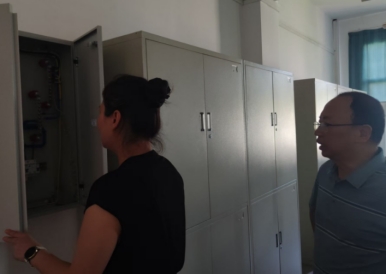 检查过程中,王西礼一行重点对各实训室的用电设备以及卫生状况等存在的隐患进行了逐一检查。在检查配电箱时仔细查看了线路是否存在老化、松动等情况,确保配电箱安全运行无隐患。暑假是暴雨高发期,门窗是否关闭严实,也是重点检查内容,要确保假期安全万无一失。